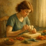 In meiner Werkstatt bekommen manche dieser Wesen ein Gesicht – aus Wolle, aus Liebe, aus Licht.